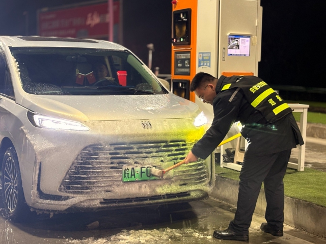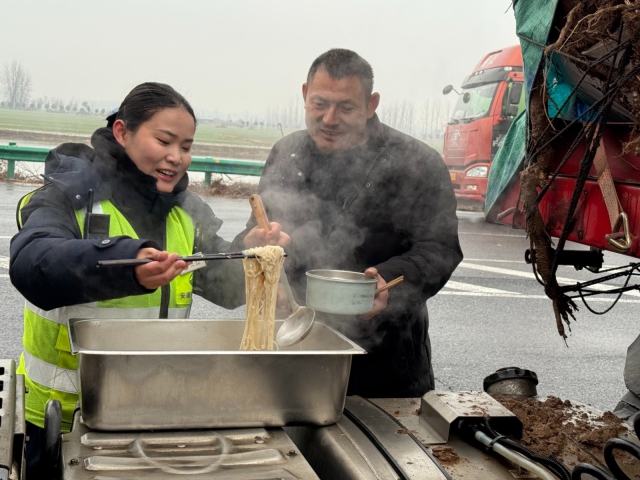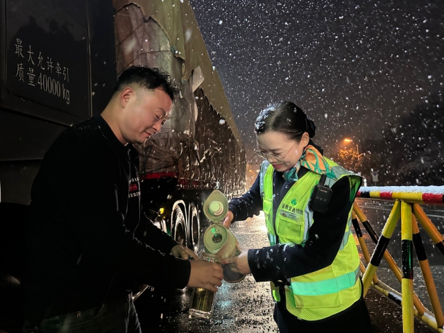 受降雪影響的收費(fèi)站同步開(kāi)展收費(fèi)車(chē)道及廣場(chǎng)積雪清掃,確保站區(qū)通行順暢。與此同時(shí),各收費(fèi)站積極開(kāi)展“暖冬行動(dòng)”,為司乘人員提供熱水、姜茶、簡(jiǎn)餐、手機(jī)充電及車(chē)牌除雪等貼心服務(wù),在寒冷雪天中傳遞“皖美高速”的溫暖與關(guān)懷。96566熱線服務(wù)中心增加話務(wù)坐席,及時(shí)回應(yīng)群眾訴求。各服務(wù)區(qū)、加油站強(qiáng)化現(xiàn)場(chǎng)管理和車(chē)輛疏導(dǎo),通過(guò)鋪設(shè)防滑墊、麻袋等落實(shí)防滑措施。