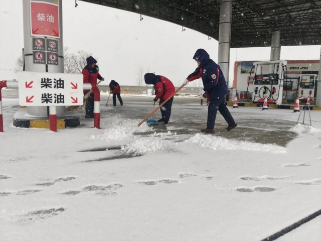 驛達服務區(qū)在易滑區(qū)域鋪設防滑墊并設置警示牌,在廣場、通道等易結冰路面,及時撒布融雪劑,并備足各類除雪防滑物資。依托“司機之家”“U+幸福驛站”等載體,組織志愿者為司乘提供姜茶熱飲、便民藥箱等貼心服務。加油站板塊統(tǒng)籌優(yōu)化資源調配,積極協(xié)調成品油資源,根據天氣預警情況,提前向受惡劣天氣影響的重點路段加油站增配庫存。各加油加氣站提前備足防滑墊、鐵鍬、掃帚等應急物資,及時清理加油區(qū)及進出口通道積雪。